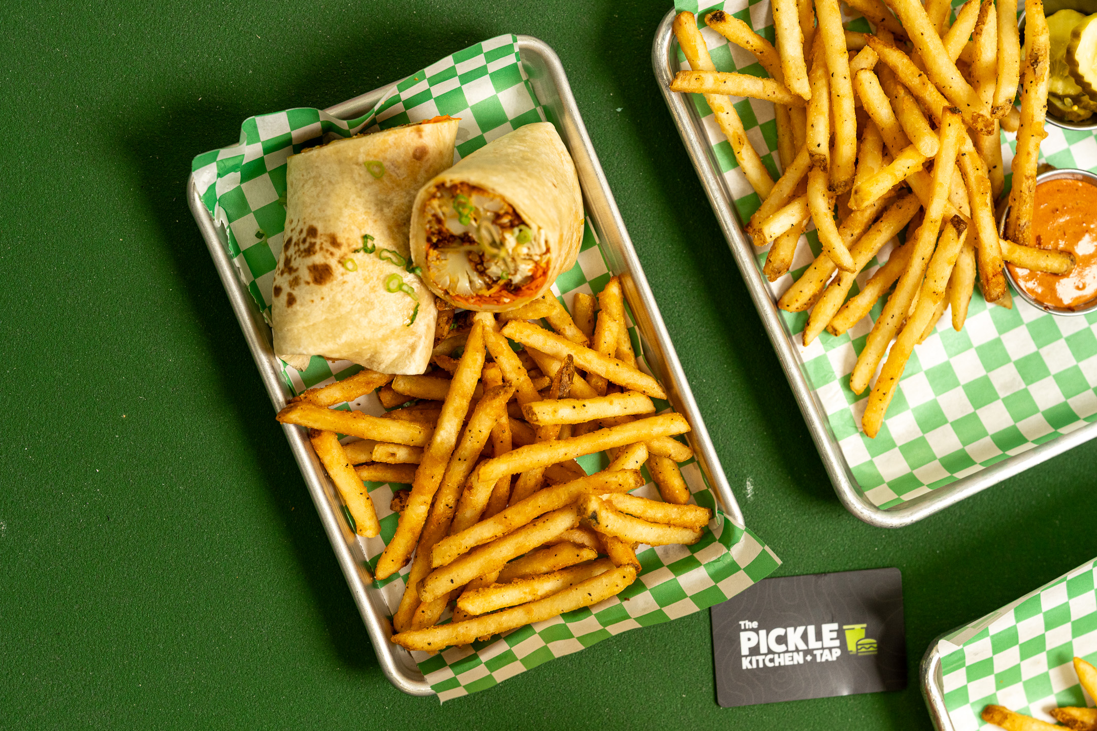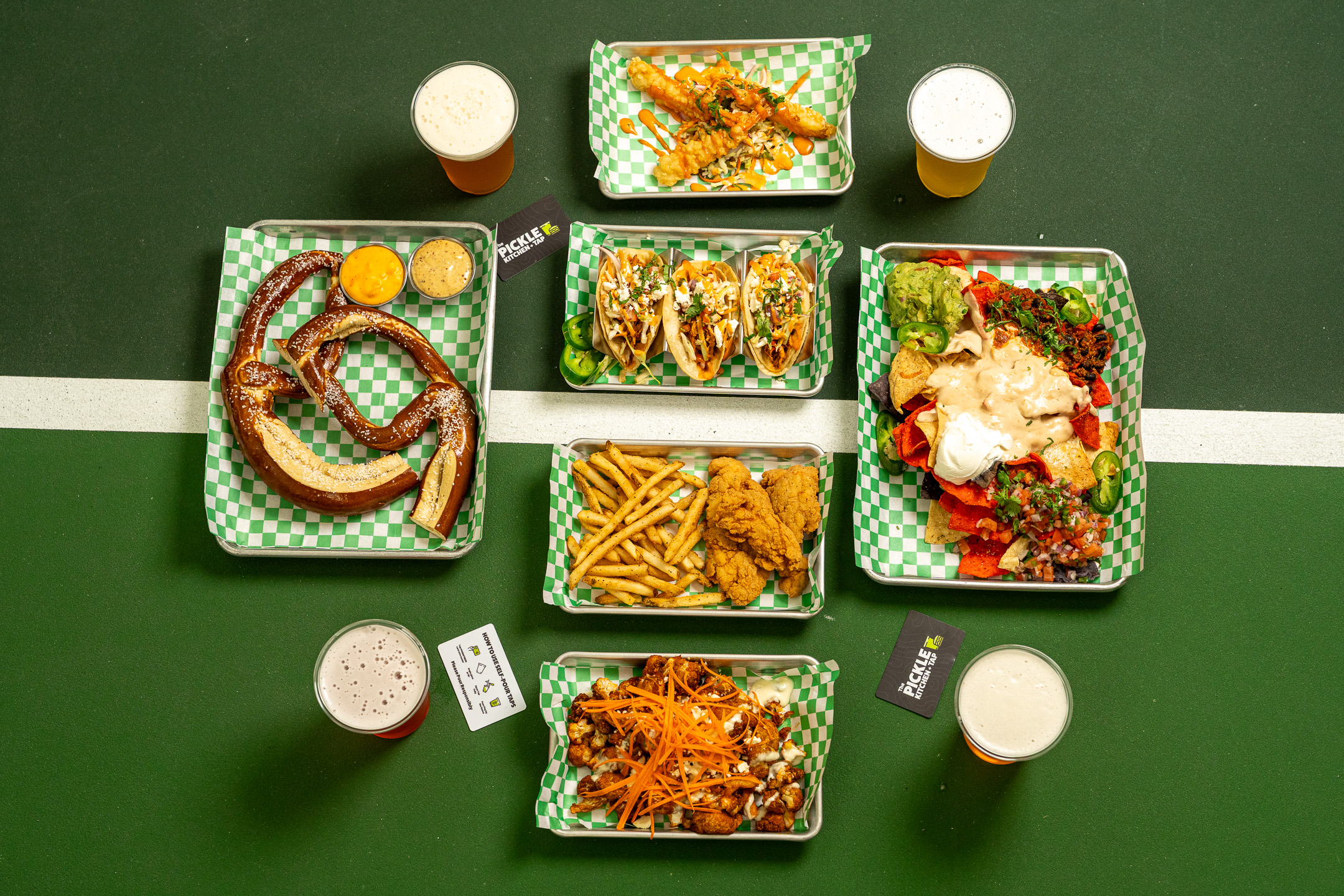 Our tap wall invites you to explore a diverse lineup of self-serve beverages. Taste test local craft beers, your favorite domestic brews, and seasonal specials. You can even pour wine, ciders, and craft cocktails. Whatever your taste, you’re sure to find something to savor at The Pickle Kitchen + Tap!